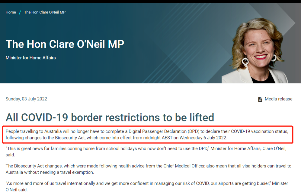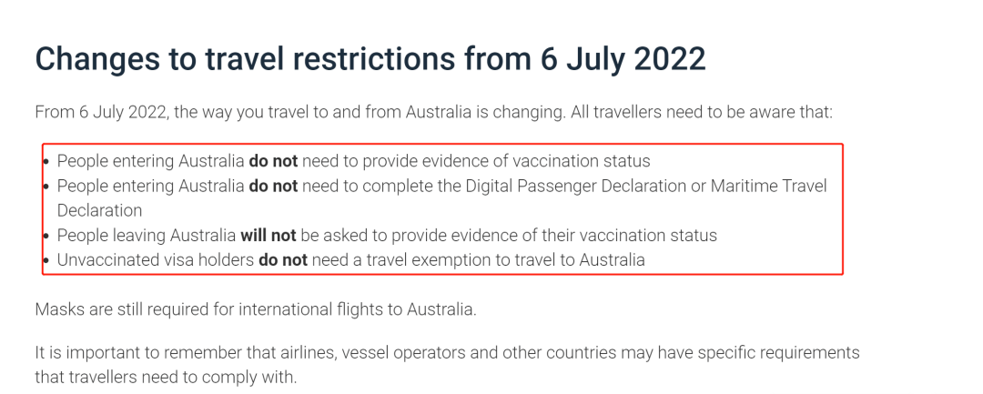 從2022年7月6日起,入境澳洲的所有旅客需注意事項(xiàng):