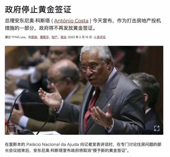 緊跟愛爾蘭步伐,葡萄牙總理安東尼奧·科斯塔2月16日宣布,將徹底關停葡萄牙“黃金簽證”投資移民項目。科斯塔表示,歷時十年的黃金簽證已經履行了其該有的職責、并完成歷史使命。消息稱,葡萄牙政府將于2023年3月16日公布黃金簽證項目關停細節。