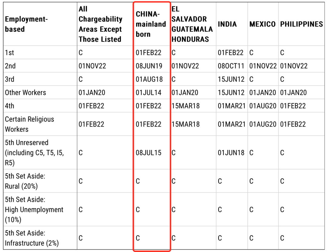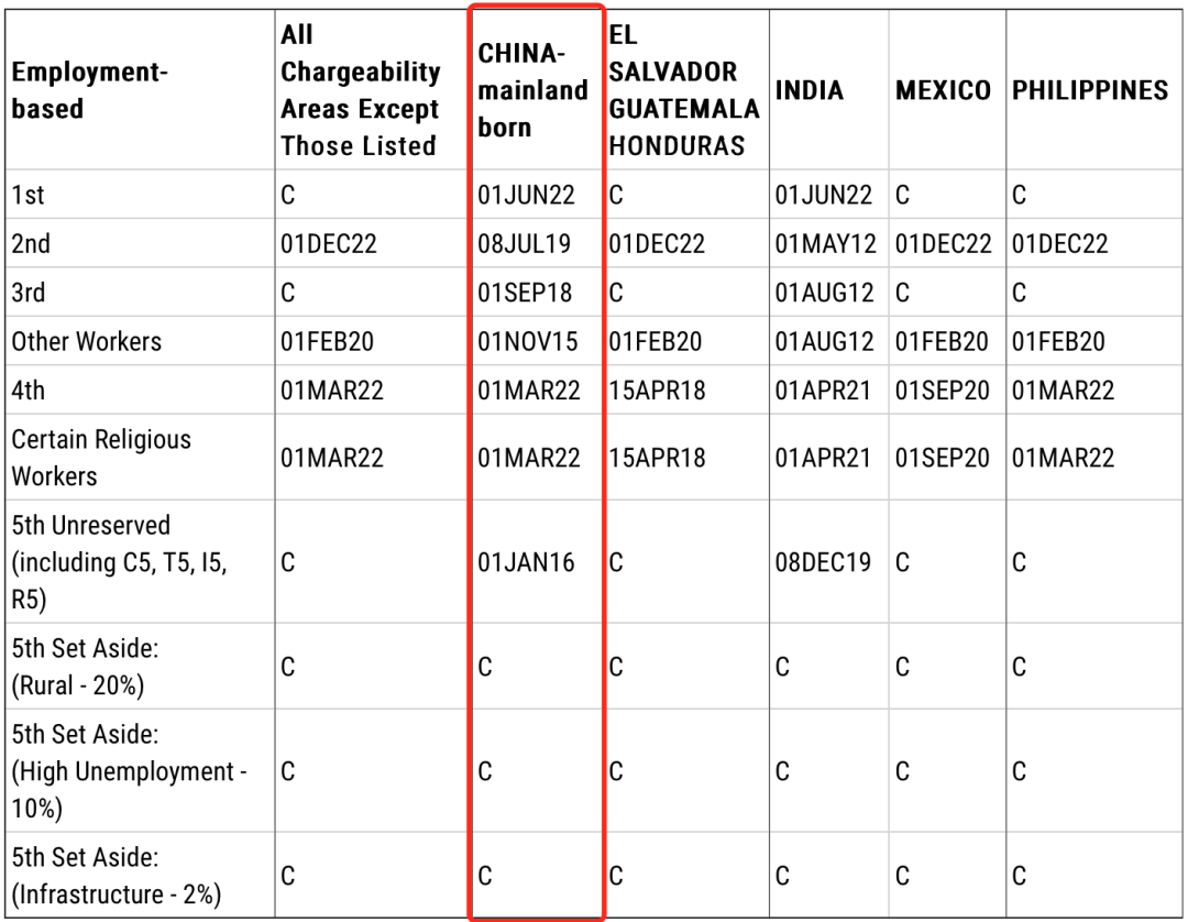 EB-5預留類別(鄉村項目、高失業率項目、基建項目):無排期