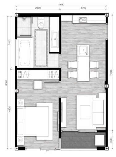 一居室?guī)饺嘶▓@使用面積46.48㎡
