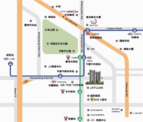 BTS天鐵1站地,8分鐘到達(dá)在建高鐵站Bang Sue,直線距離1.5km;