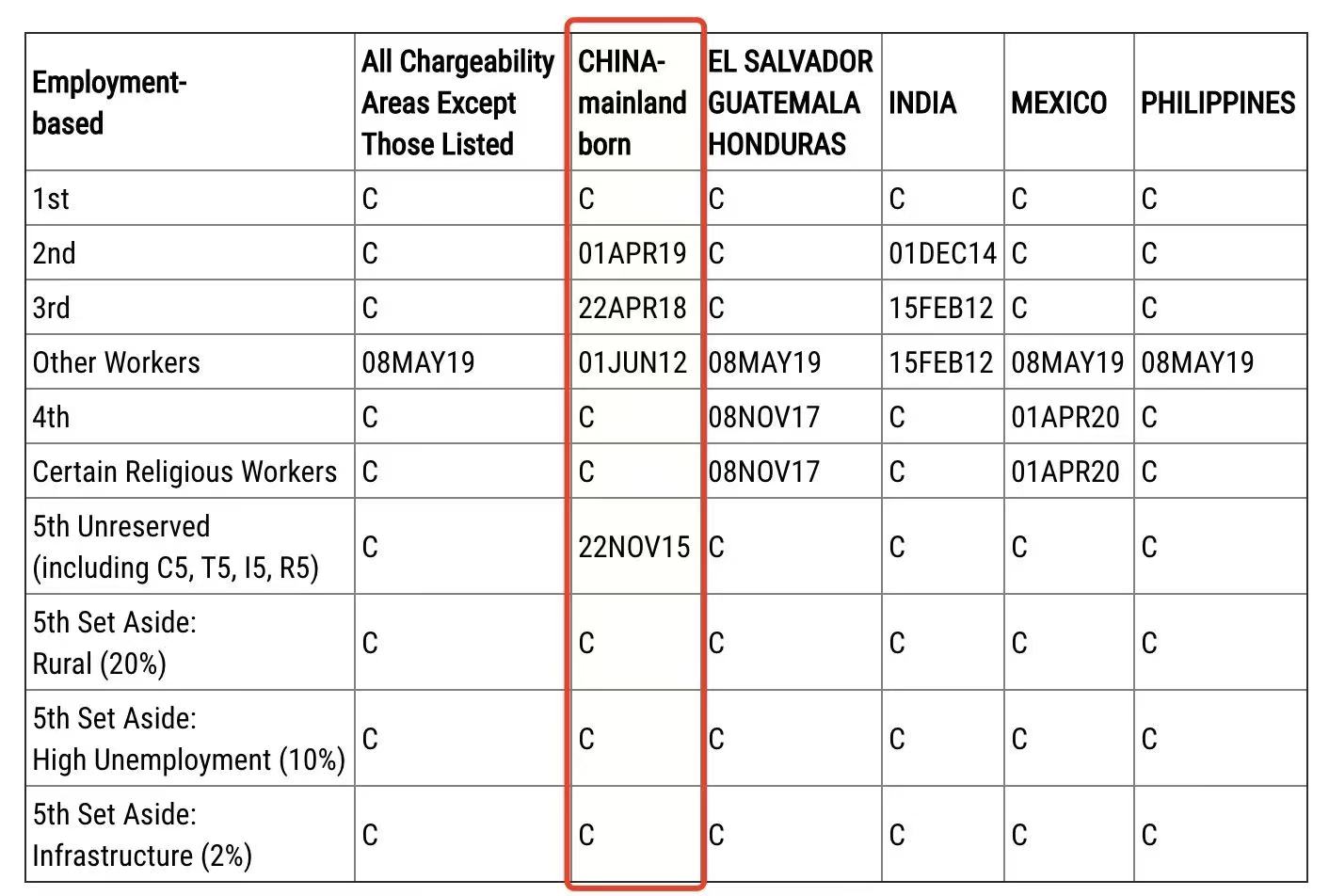 ·EB-5鄉(xiāng)村、高失業(yè)地區(qū)、基建項目因預(yù)留了簽證配額,目前依舊無排期。