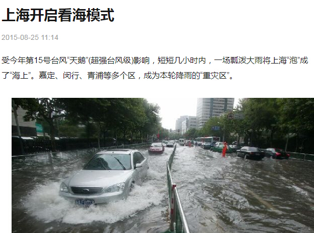 然而即使是全中國最先進的特大國際都市,排水系統(tǒng)也抵御不了一次特大暴雨。