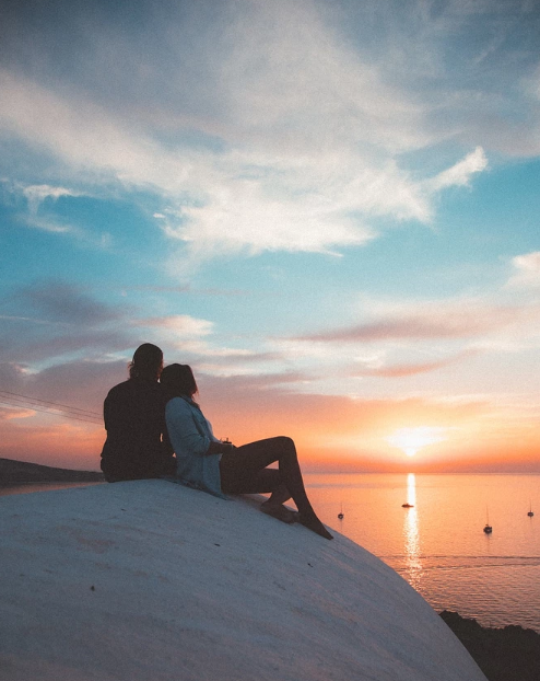 除了純正的“希臘藍(lán)”,這里最知名的招牌便是夕陽了。每到傍晚,陽光輕撫海面,為碧藍(lán)的海水披撒上一片絢麗的金紗。