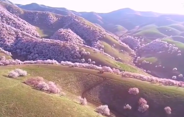 新疆杏花溝是一片中世紀(jì)遺留下來的三萬多畝野杏林。每年4月,漫山的杏花如期盛開,