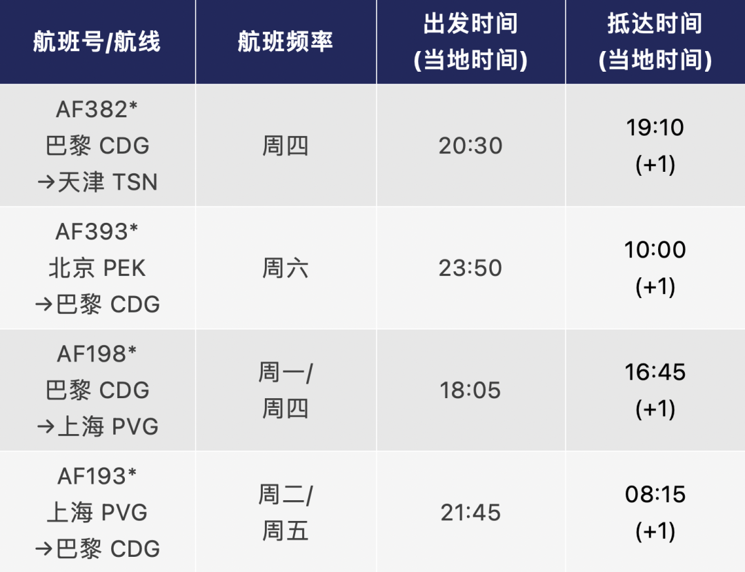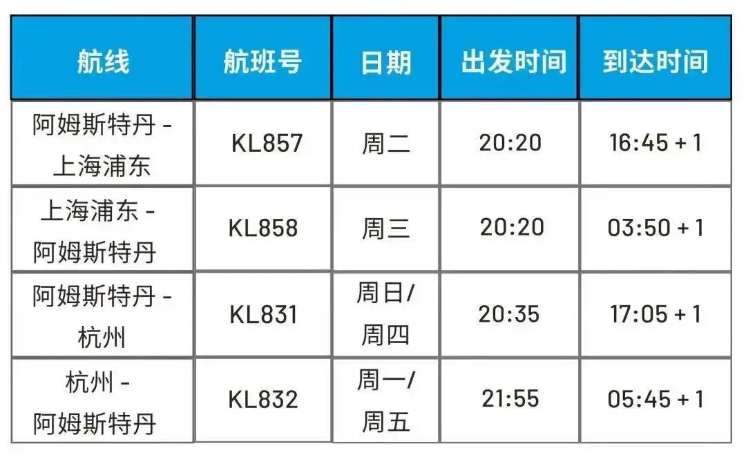 圖為荷蘭皇家航空赴華航班時(shí)間表